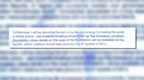 “Furthermore, I will be devoting the rest of my life and energy to making the world a better place. I am currently finalizing efforts to set up The Goodluck Jonathan Foundation. More details on the work of the Foundation will be available at the launch, which I believe should take place by the 3rd quarter of 2016.”
