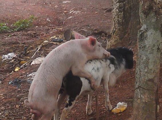 Incredible! A pig is trying to hump a goat? Lol…this was spotted at new site River raine wonderful Oji-river in Enugu State…