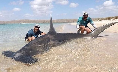 Joshua Butterworth and Jethro Bonnichta have shot to international limelight after catching two mega sharks off the coast of Western Australia. The duo were lucky after spending 10 days fishing north of Carnarvon and caught an impressive 30 sharks.